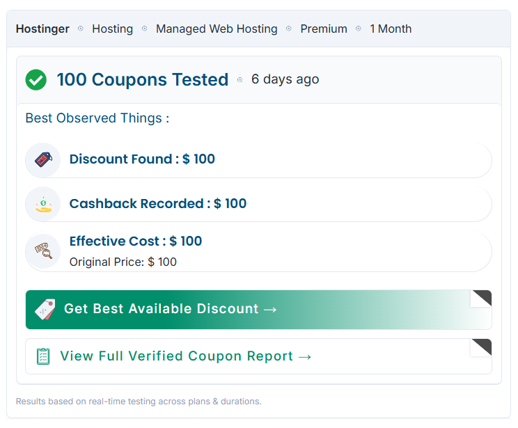 These coupons were found on blogs, YouTube videos, and coupon sites — and failed during real testing. HostingCoco shows these so you don’t waste time testing them yourself.